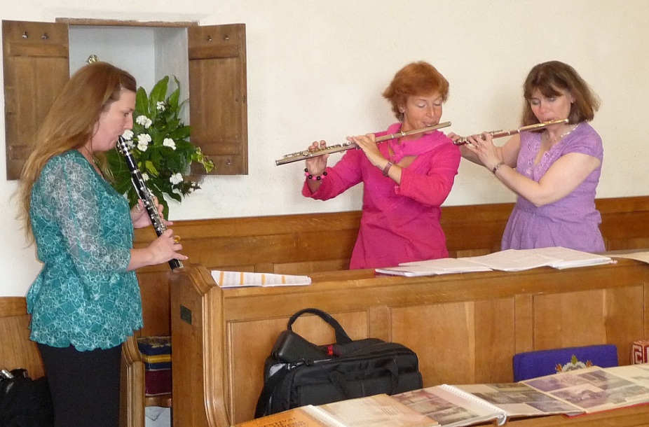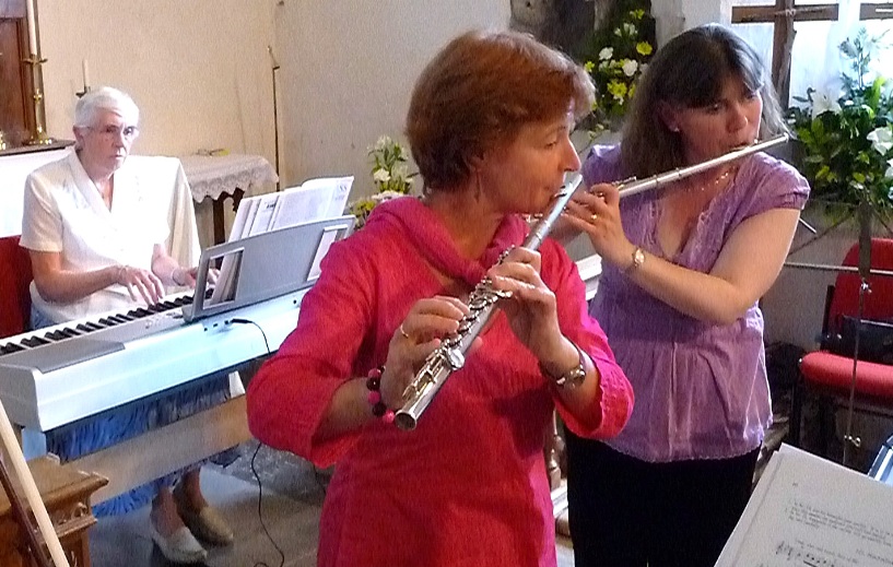 Coffee Concert – Little Clacton July 24th 2011 Caroline, Silke and Julie have a quick rehearsal Ruth, Brian, Peter and Wendy take the stage Caroline, Julie and Silke perform Francesca page turns for her Grandmother who volunteered to play keyboard! “Hey, take that flute out of my face!” Says Julie “That’s better…” Share this: Email a link to a friend (Opens in new window) Email Like Loading...
